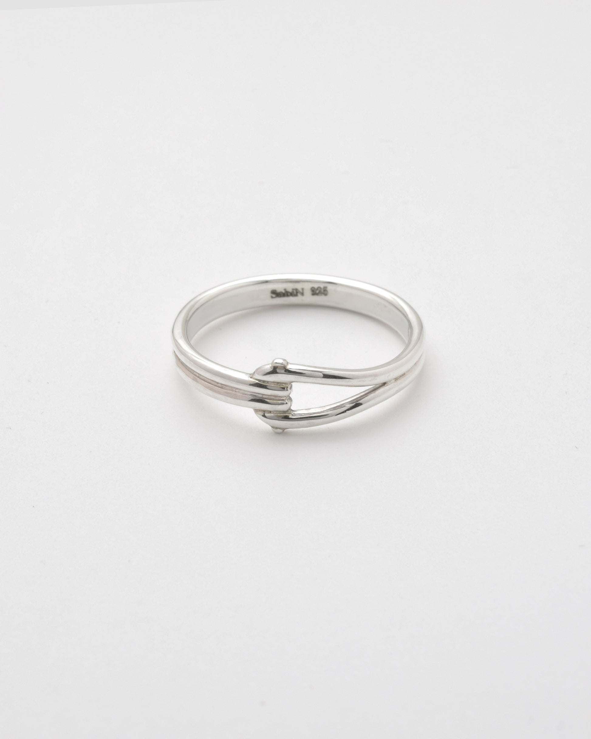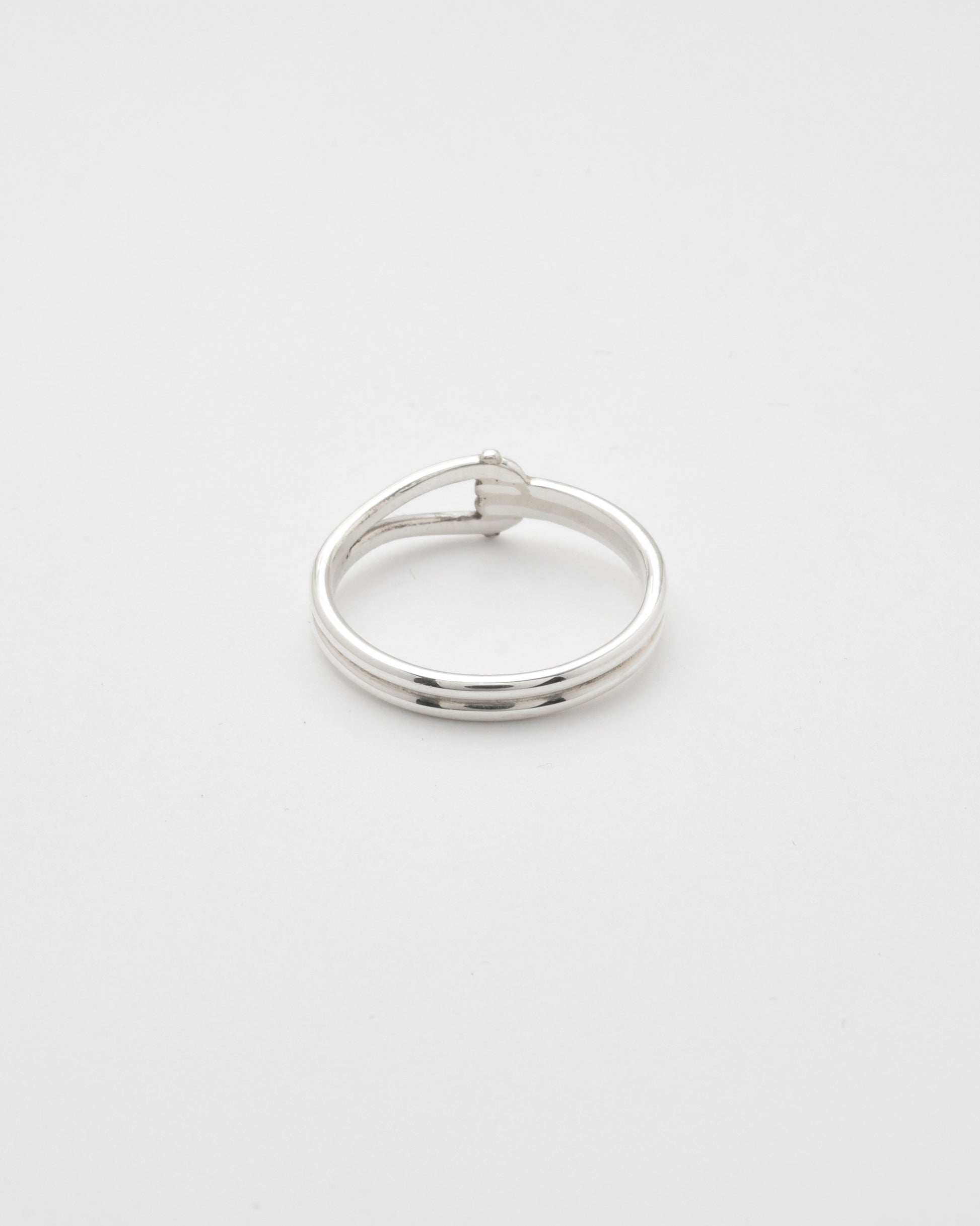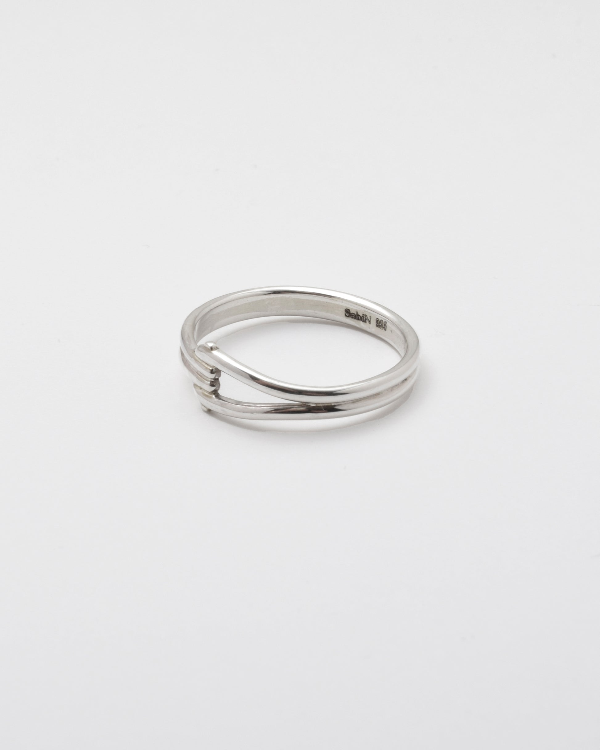 ミリタリーで活用されるパーツ「Dカン」をモチーフに、滑らかな流線型を描いた、無骨さと上品さを兼ね備えた印象のリング。