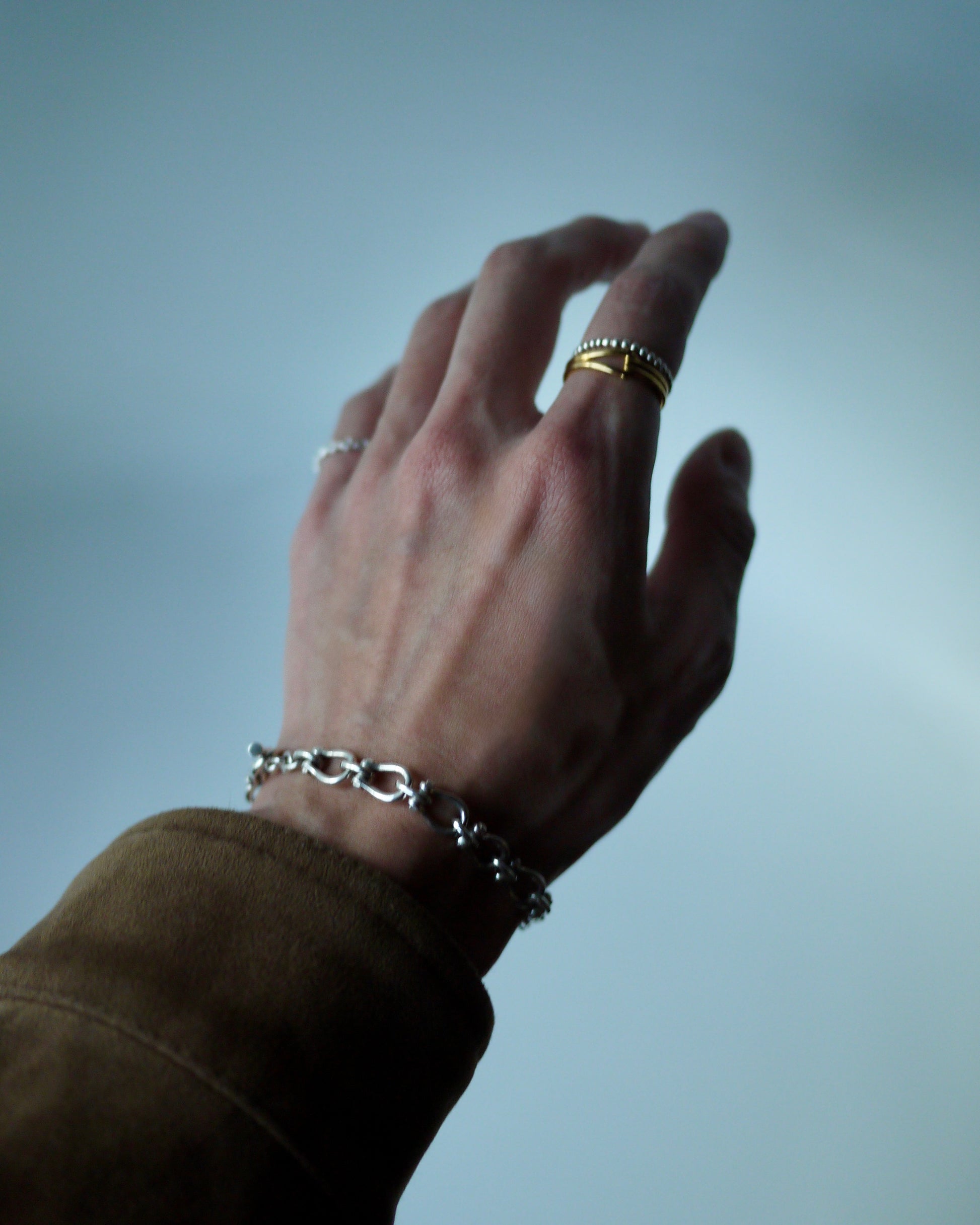 存在感がありながらも華奢なデザインにする事で、お手持ちのアクセサリーやスタイリングにも馴染みやすいです。