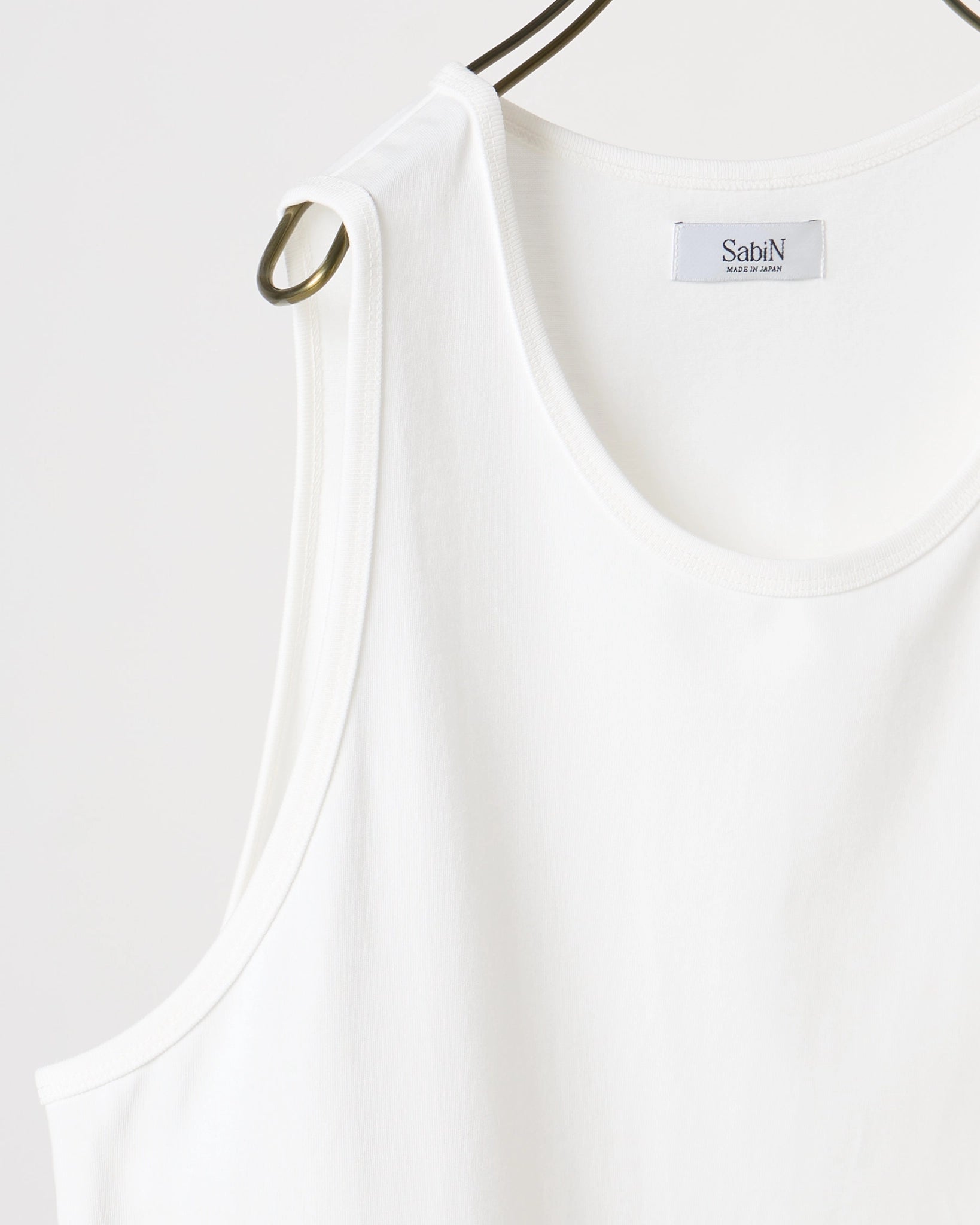 サイズ感もタイトすぎず、ルーズすぎない、まるでタンクトップとノースリーブカットソーの中間的な、そんなありそうでなかった、品のある万能なデザインにしています。